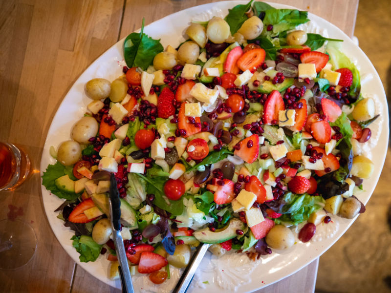 Balanced meals combine protein, fiber, healthy fats, and water-rich foods. Examples include: