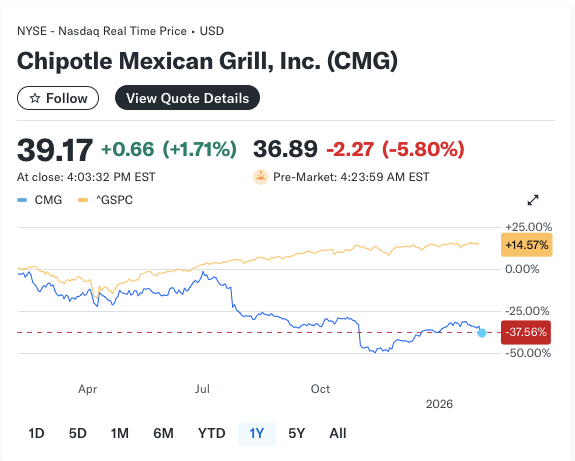 Investors should also recognize that valuation compression has already contributed to a sizable pullback in Chipotle shares relative to historical highs, reflecting market recalibration of growth expectations.